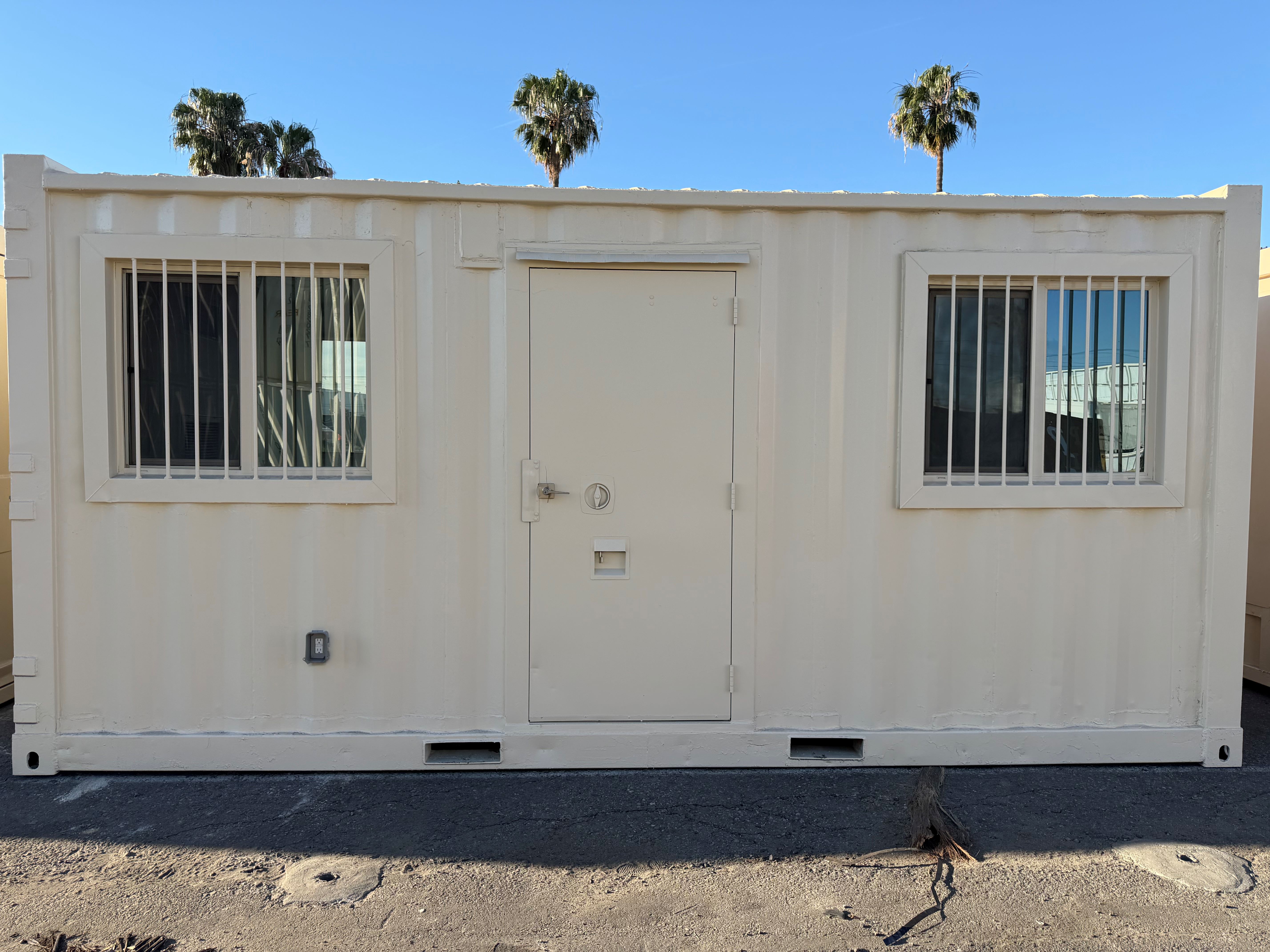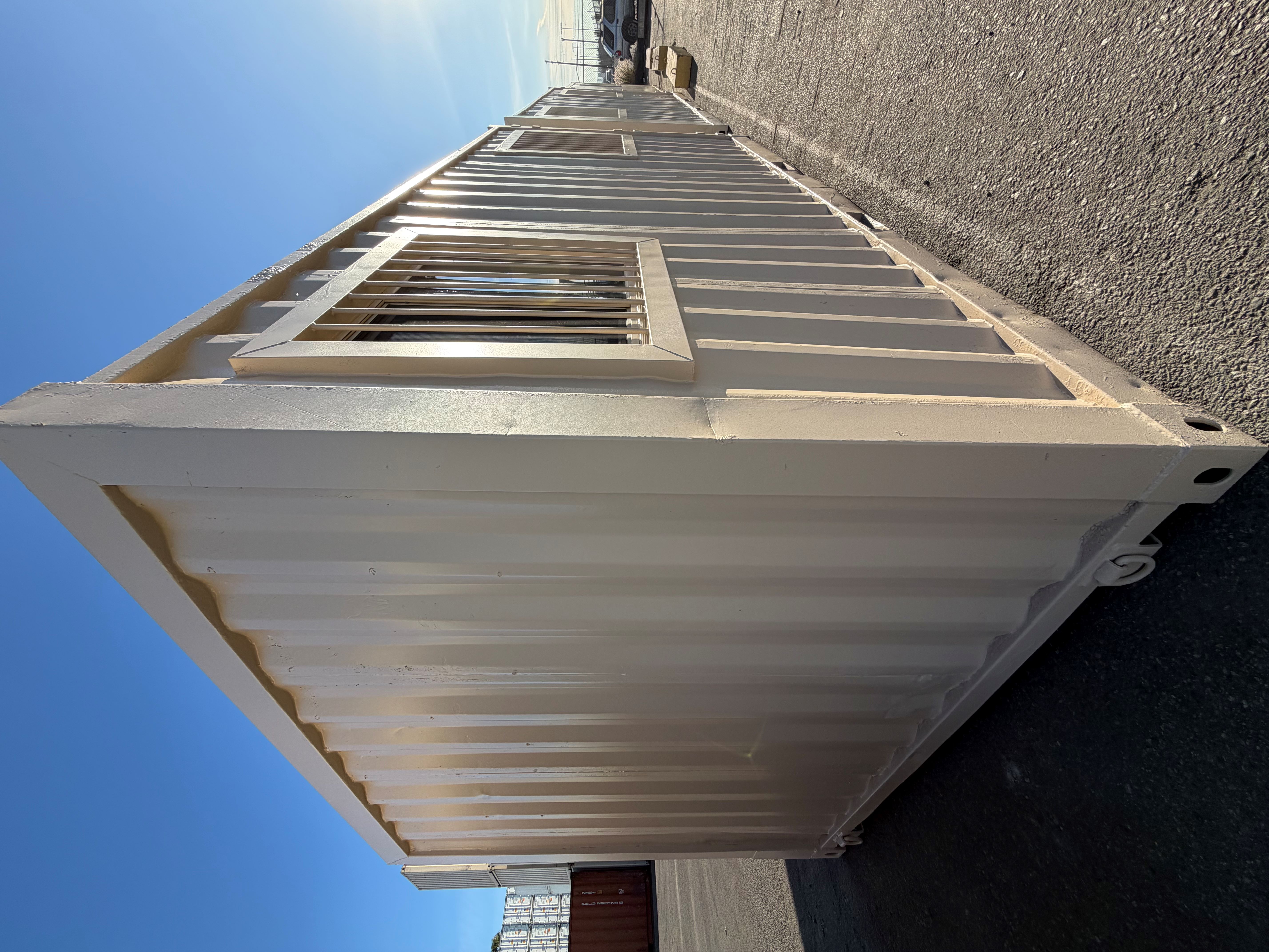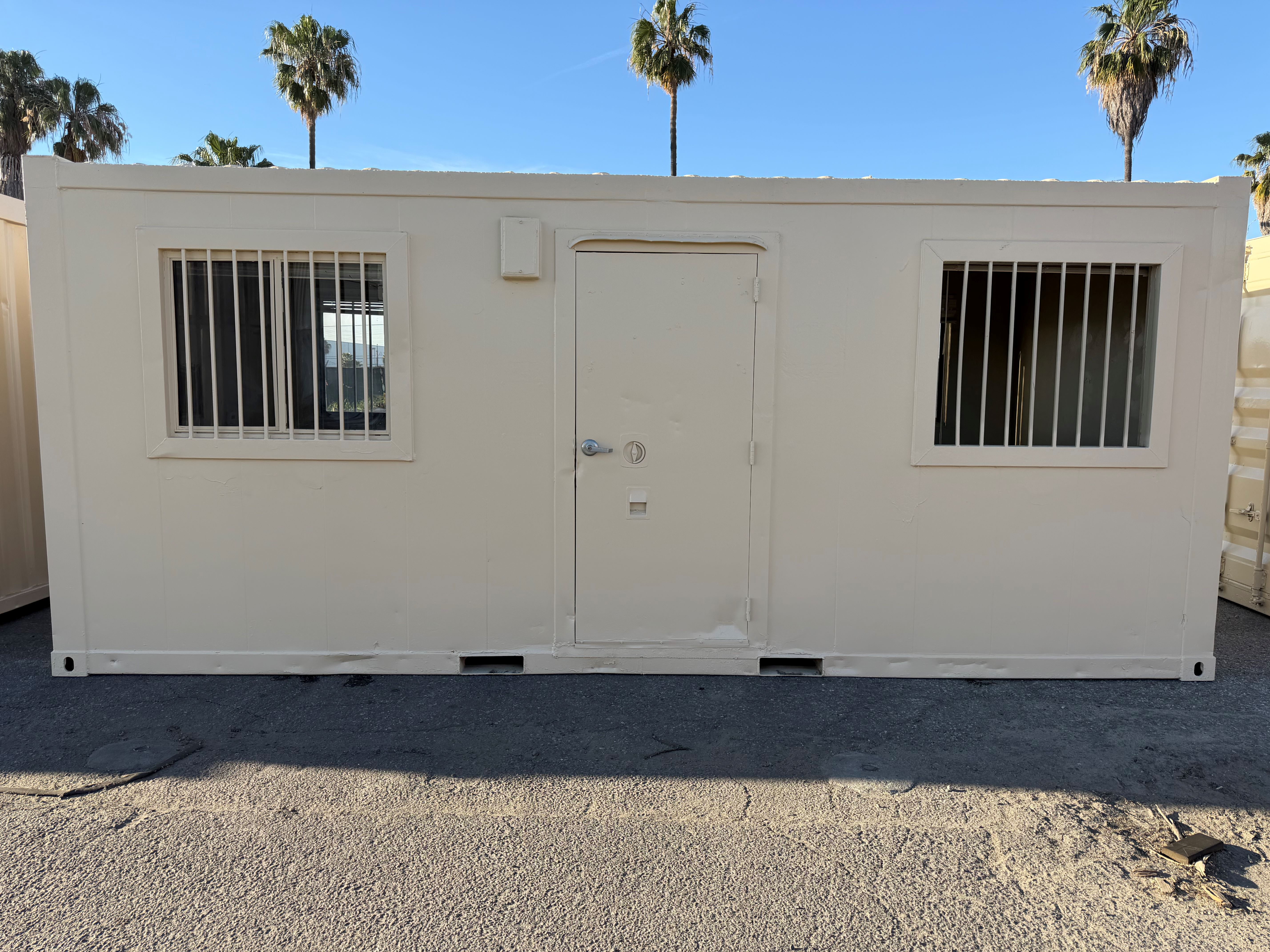 Our 20ft x 8 wide container offices were USED/ Refurbished units that are now designed to provide both a functional workspace and secure on-site storage in one unit. These versatile containers are ideal for job sites, industrial yards, and temporary office setups.